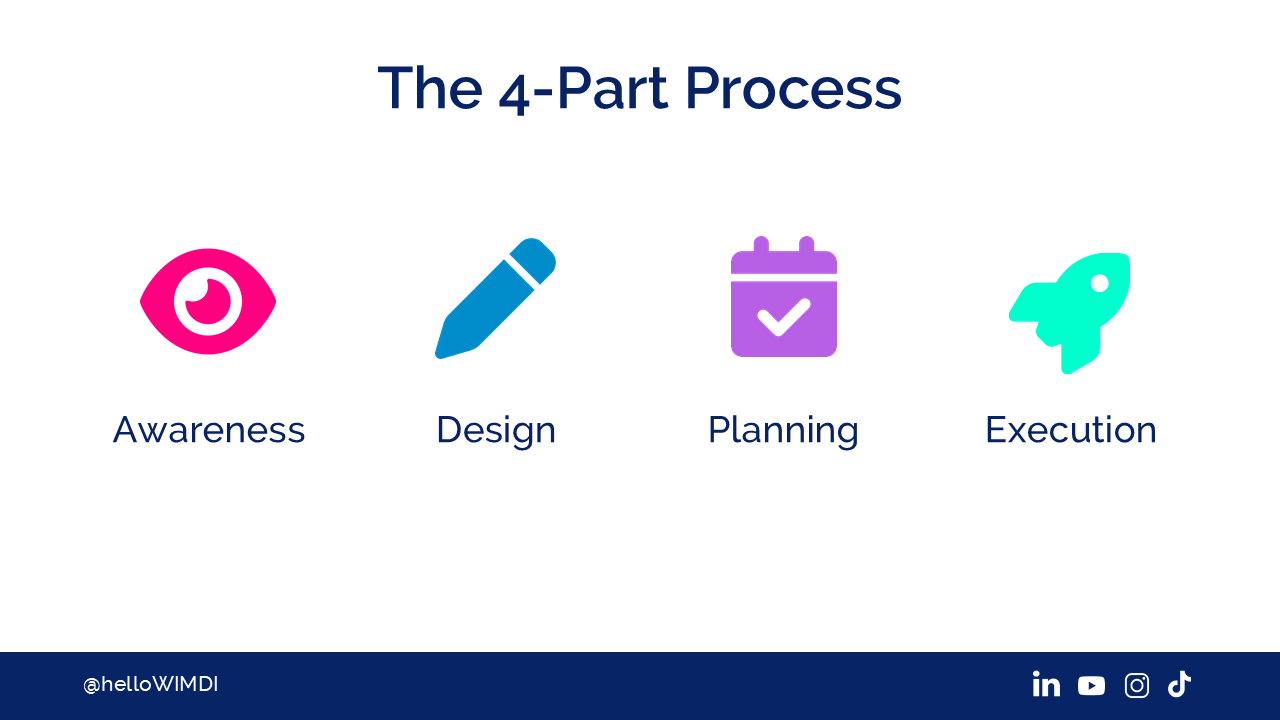There's a four-part process that Amina can leverage for making change. That four-part process includes awareness, design, planning, and execution.