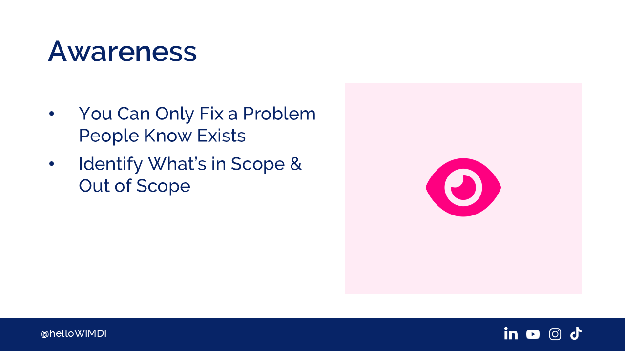 You might think that the prerequisite for getting that awareness is that you need to know what's not working, right? Figuring out what the problem is for yourself.