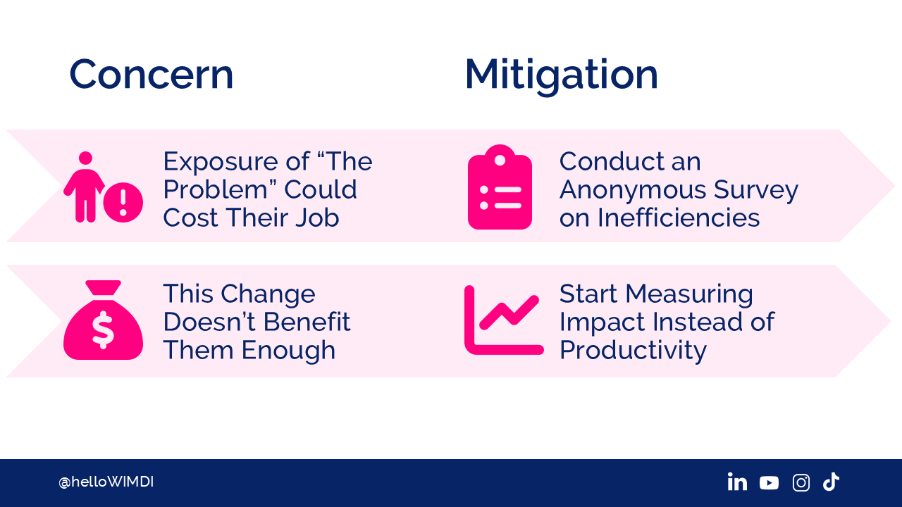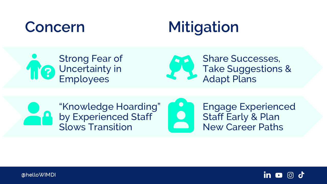 The second concern is knowledge hoarding. Sometimes there's a couple of people who have deep knowledge of systems or process. If they don't see or understand how they can be part of the change, they might not be willing to share their knowledge which then can cause delays and issues with transitions.