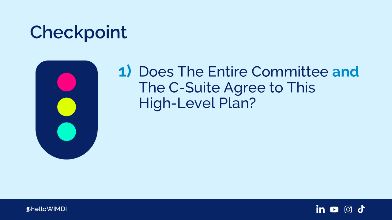 In this checkpoint, Amina will need to ask the C-suite and all the committees directly involved if they agree to the detailed plan. If she gets yes from everyone, we’re at the last phase, which is the execution phase.