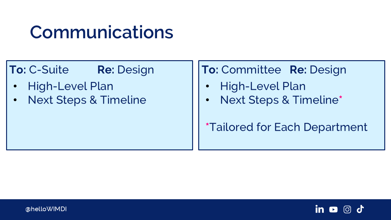 The committee and the heads of the departments also need to know the specifics of the impact on their department. It maybe doesn’t need to be as detailed as cost or other metrics that don’t concern them, but it should still be part of the communication.