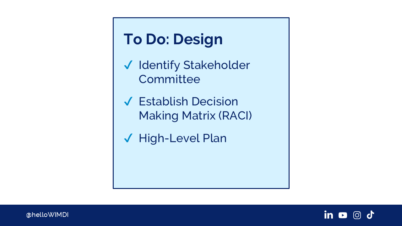 That will include the to-do list, the major challenges for communications, the checkpoints, and how you would know you are ready to move on to the next phase.