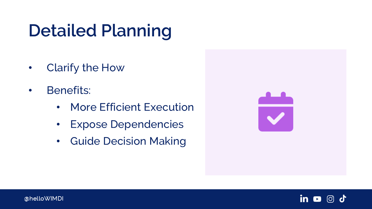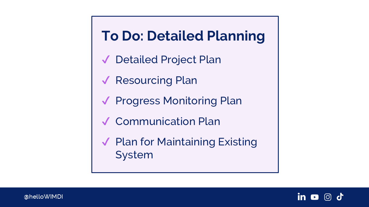 Let's take a look at Amina's to-do list for the detailed planning phase. While planning the timeline, the focus will be two-fold.