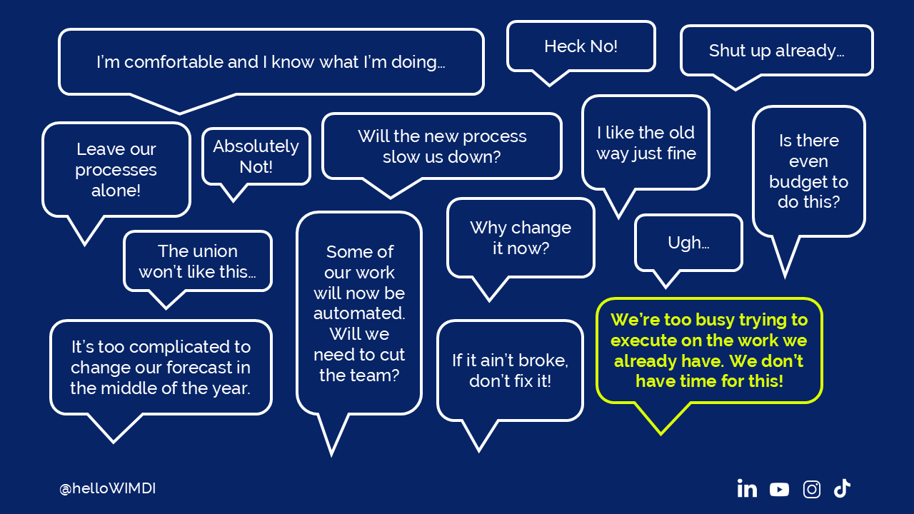 They might say, "Well, it's compliance issues that we have to do it this way. The process has to be done that way, blah, blah, blah."