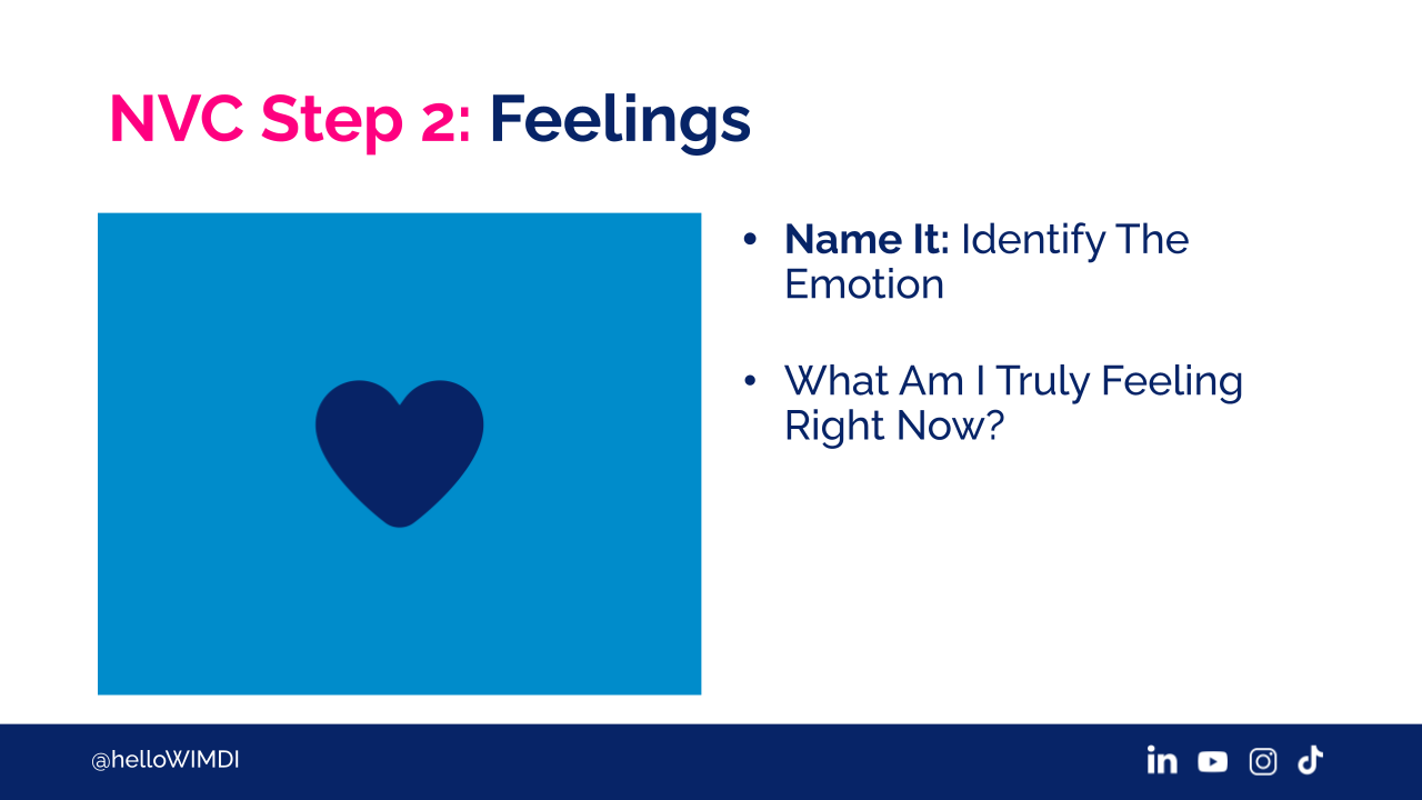 The next component is feelings. You have to get in touch with what you're feeling. Not with what they're feeling, with what you're feeling. Identify the emotion. What am I truly feeling right now?
