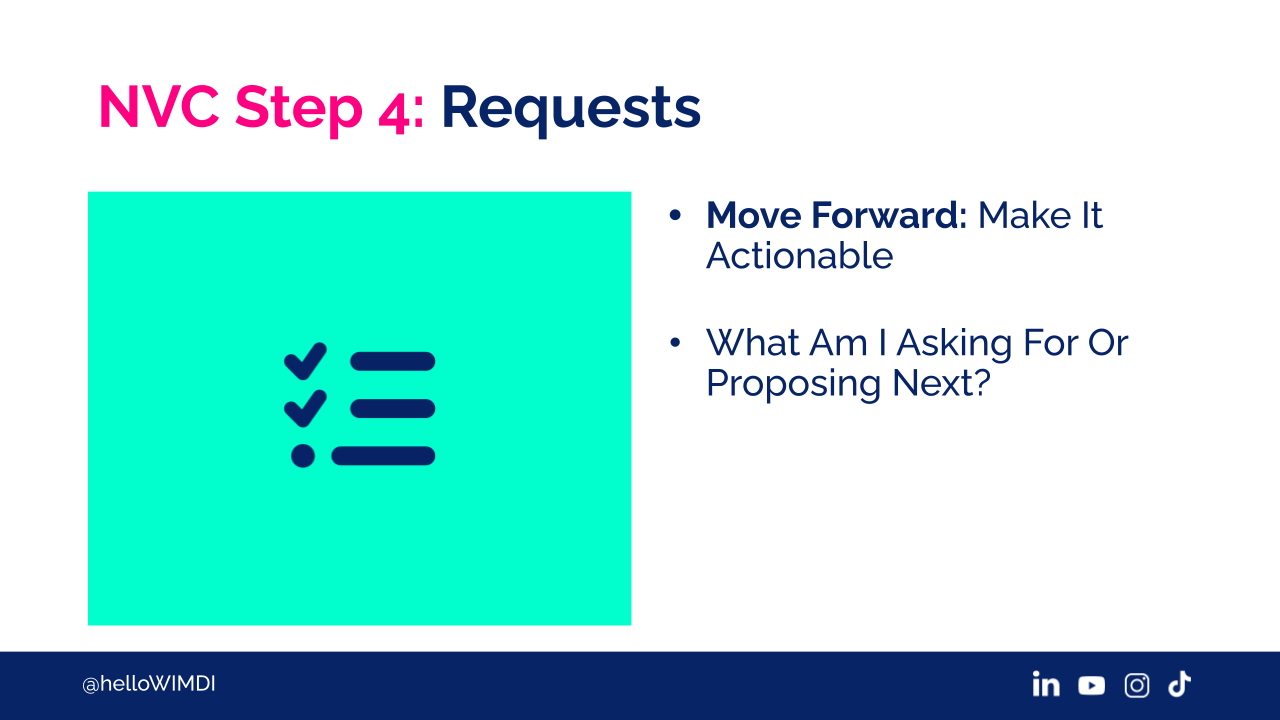 And then the fourth component is requests. How do you move forward. What's actionable? What am I going to ask for? What am I going to propose as a result of what's happening?