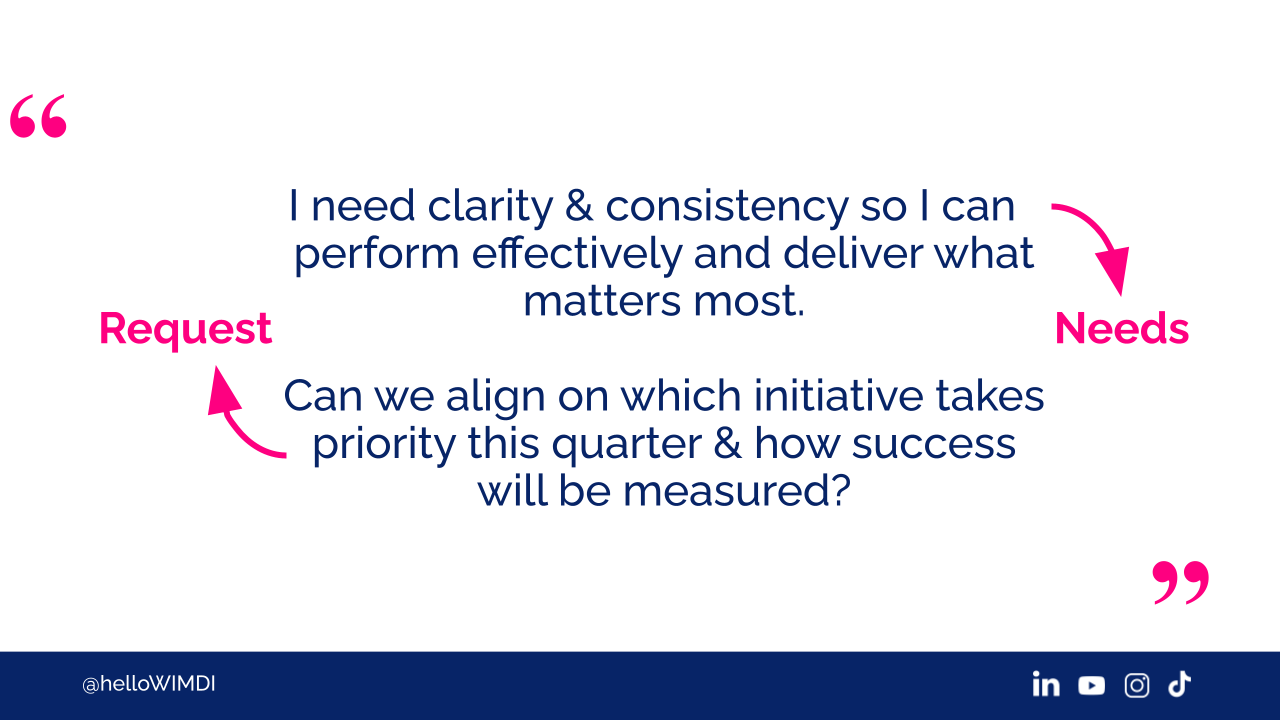 "Can we align," here's your request component, "Can we align on which initiative takes priority this quarter and how success will be measured?"