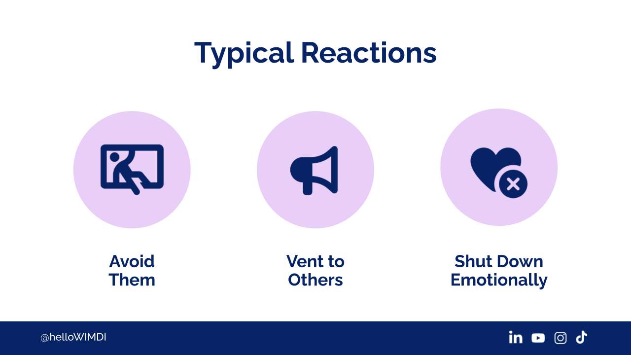 So, what do we usually do? All the wrong things, right? Typical reactions are we avoid them.