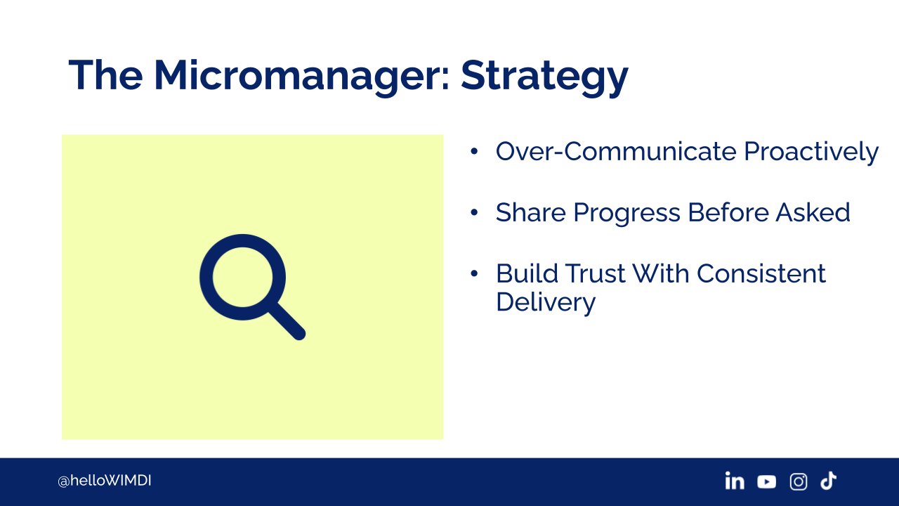 So, with a micromanager, it's very much about over-communication. Because then they begin to trust that you're on top of things.
