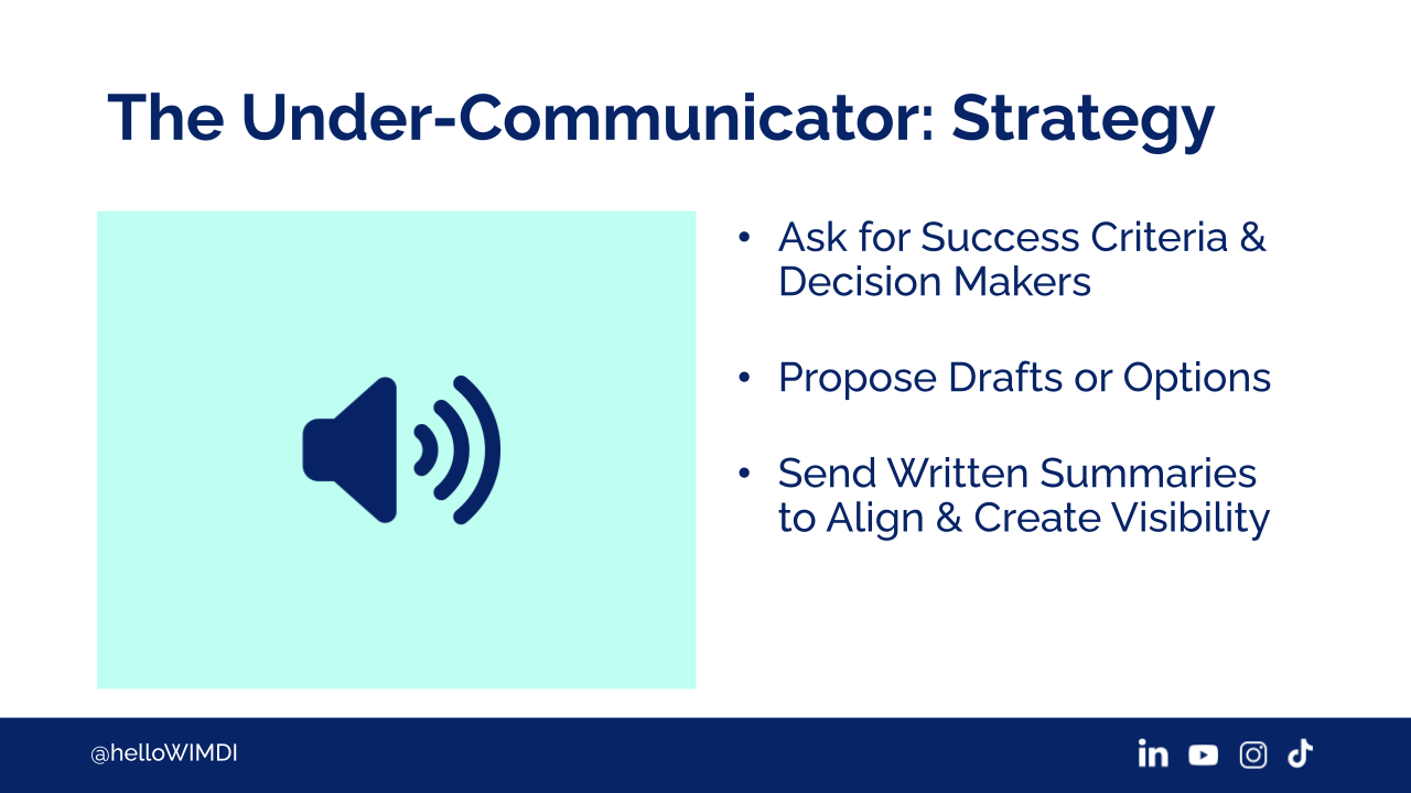 Then the under-communicator, you want to define success. You want to build confidence as a result of predictability. You want to extract the information and get their success metrics and deliver predictably.