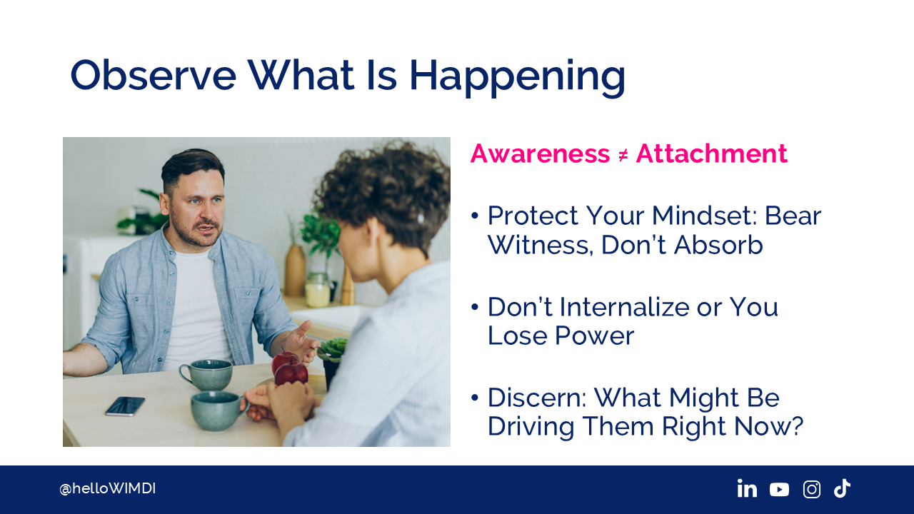 The first one is observations. You have to get clarity about what's happening. And you have to observe the pattern. What is actually happening for this person right now? What am I witnessing?